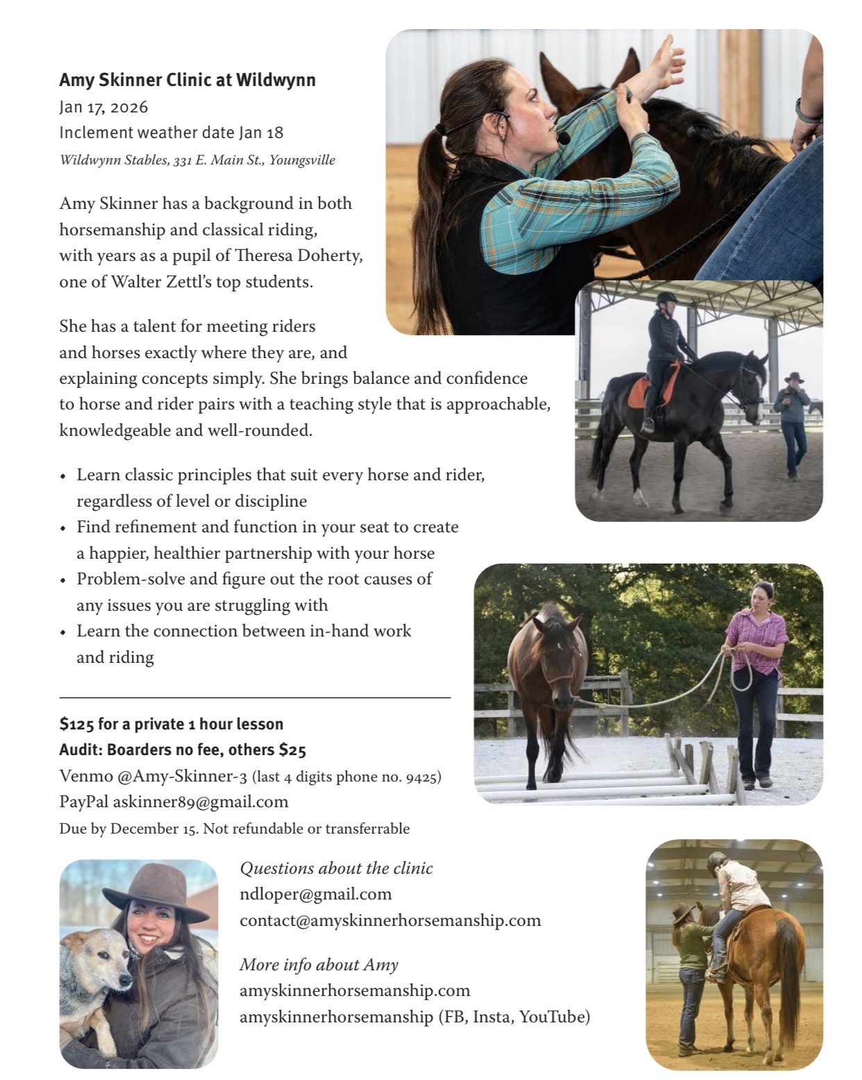 **please be sure to reserve stabling with clinic contact upon registration! Don't wait til the last minute and risk not having a spot secured at the facility!*